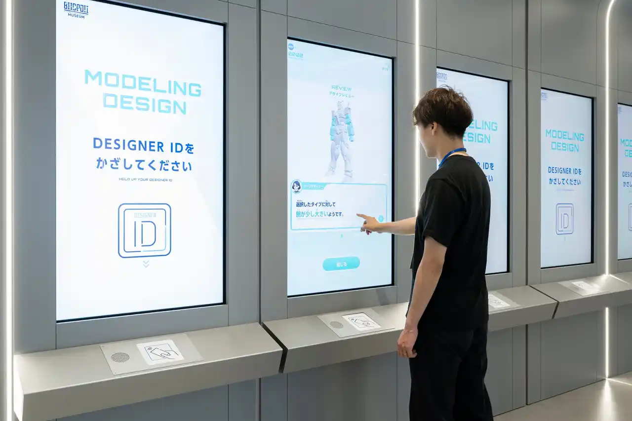 来場者が“プラモデザイナー” となって、製品を生み出すまでの一連の工程を体験できます。タッチパネルでプラモデルの形や色を決め、金型を設計して自分だけのプラモデルを企画し、そのパッケージをデザインして、自身がデザインしたオリジナルのパッケージ箱を持ち帰ることができます。 |