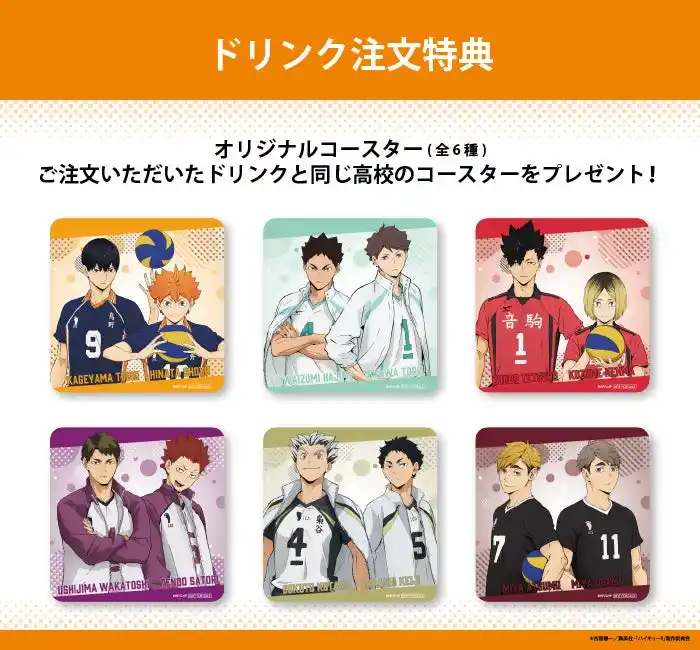 アニメ「ハイキュー!!」の世界感に浸れるカフェで、個性豊かなメニューを味わいながら、至福の時間をお過ごしください。 |
