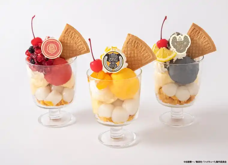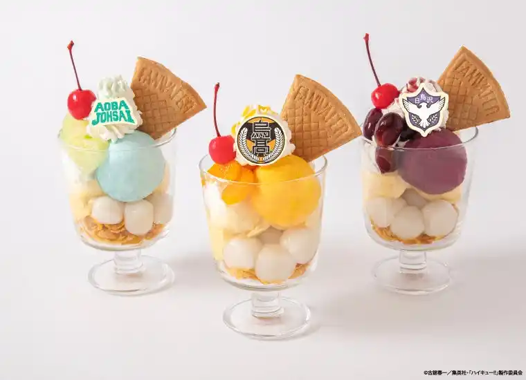 烏野高校・音駒高校・梟谷学園高校の3チームのパフェを東京店限定にて販売。 |