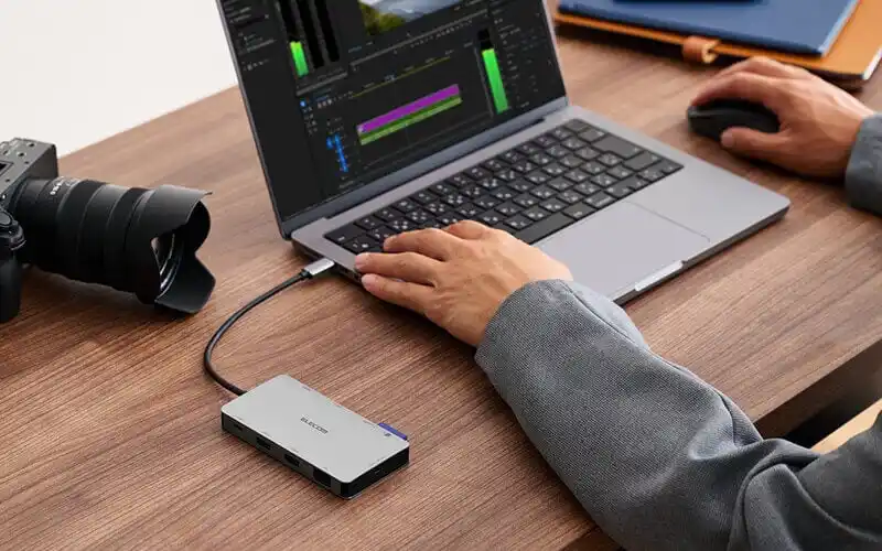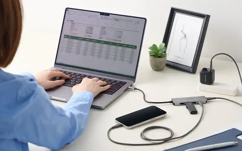 USB Type-Cポート搭載パソコンに複数のUSBポートを増設可能。さまざまなデバイスを1本のケーブルで一括接続できます。 |