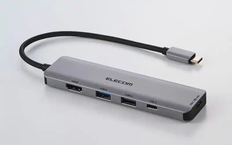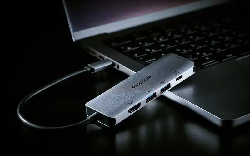 近年需要が高まっている薄型ノートパソコンは拡張性に限りがありますが、本製品を使用することで接続機器を増やすことが可能になり、自宅やオフィスでの作業効率が大幅にアップします。USB Type-Cポートに接続するだけで、HDMI(R)対応の外部モニターへ映像出力が可能です。 また、USB Power Delivery