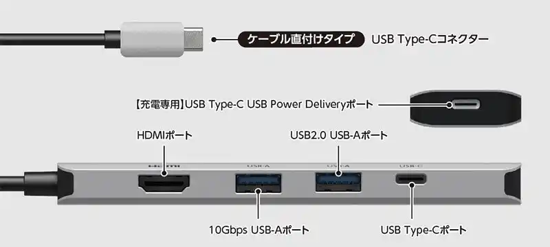 ※本製品を使用するには、パソコン本体のUSB Type-Cポートに直接接続する必要があります。 |