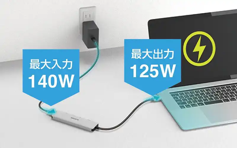 USB Power Delivery 3.1対応、パソコンの充電しながら利用可能 |
