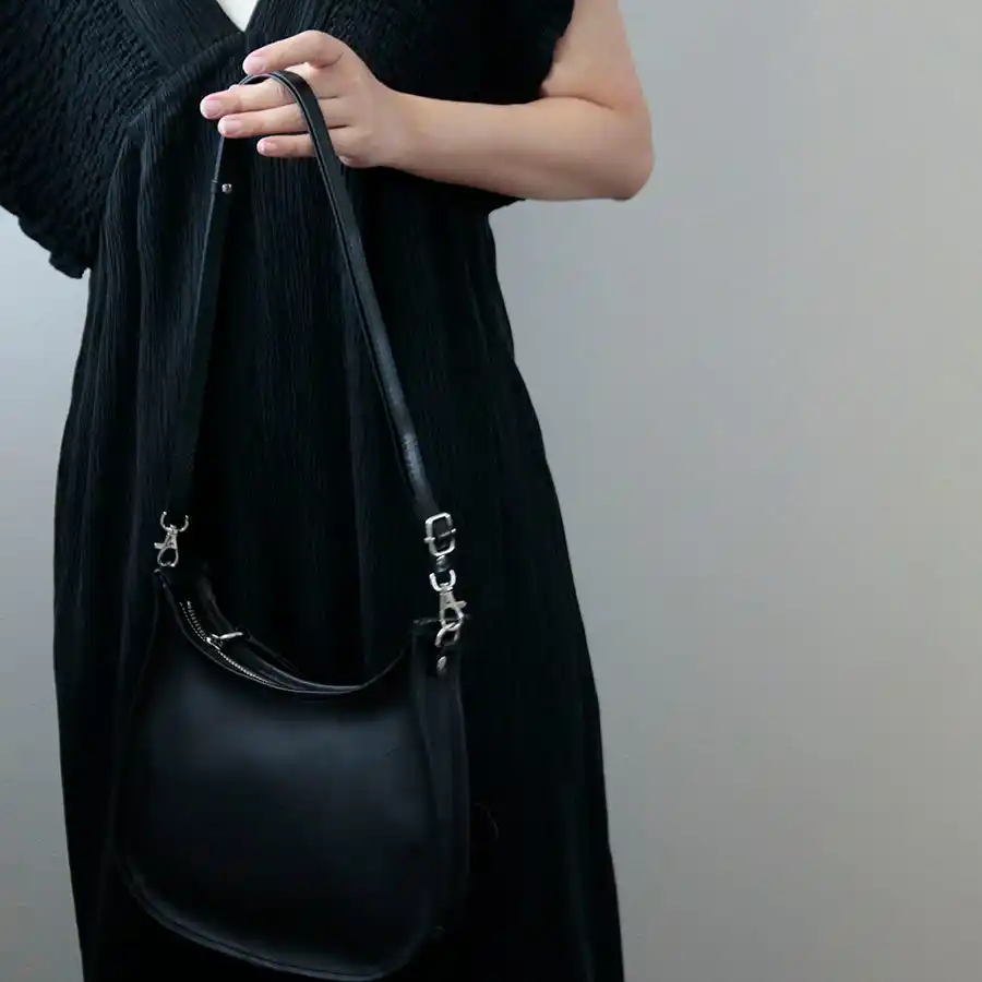ショルダーを外せば、手持ちのハンドループでクラッチバッグとしても使える、シンプルでクラシカルな2wayバッグです。 |