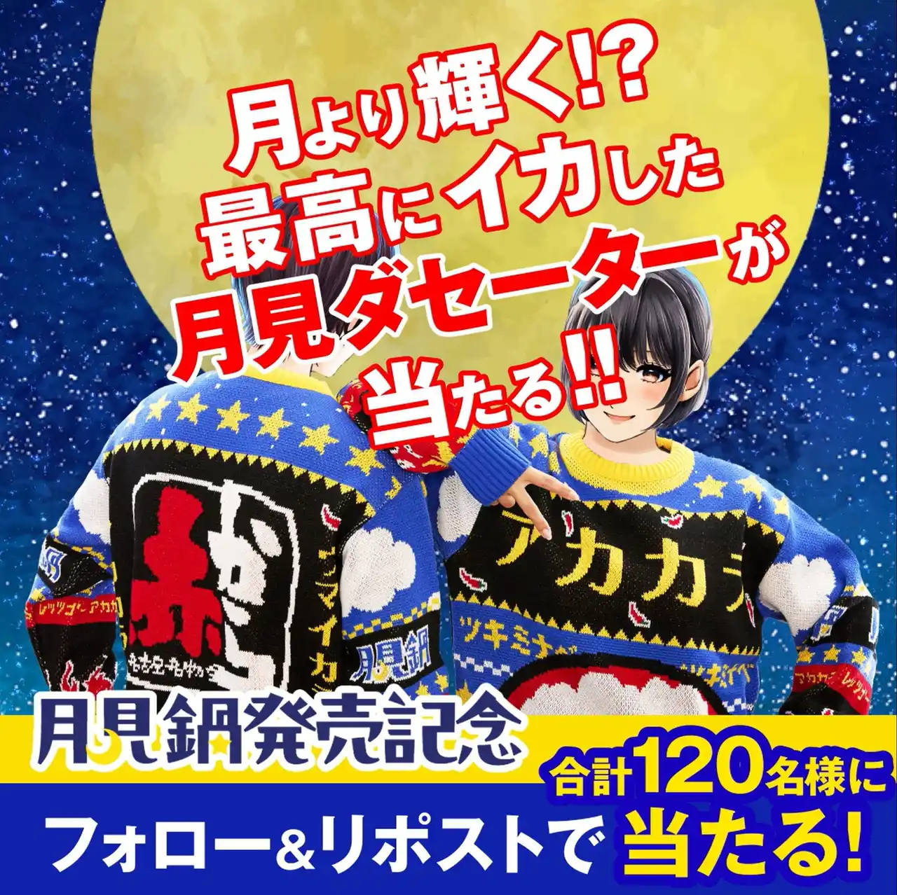 \ 緊急告知 / 赤から公式Xフォロー&リポストで「月見ダセーター」が10名に当たる! |