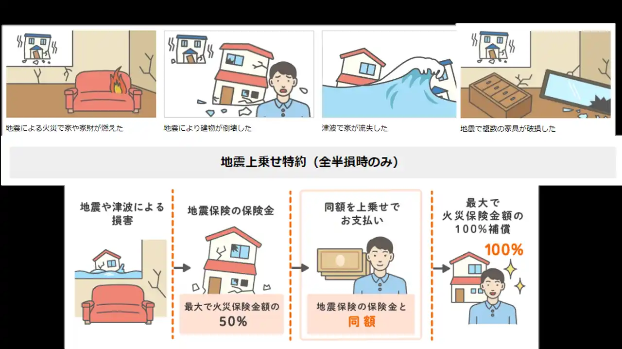 ※3 地震上乗せ特約の正式な特約名称は、「地震危険等上乗せ補償特約(全半損時のみ)」です。 |