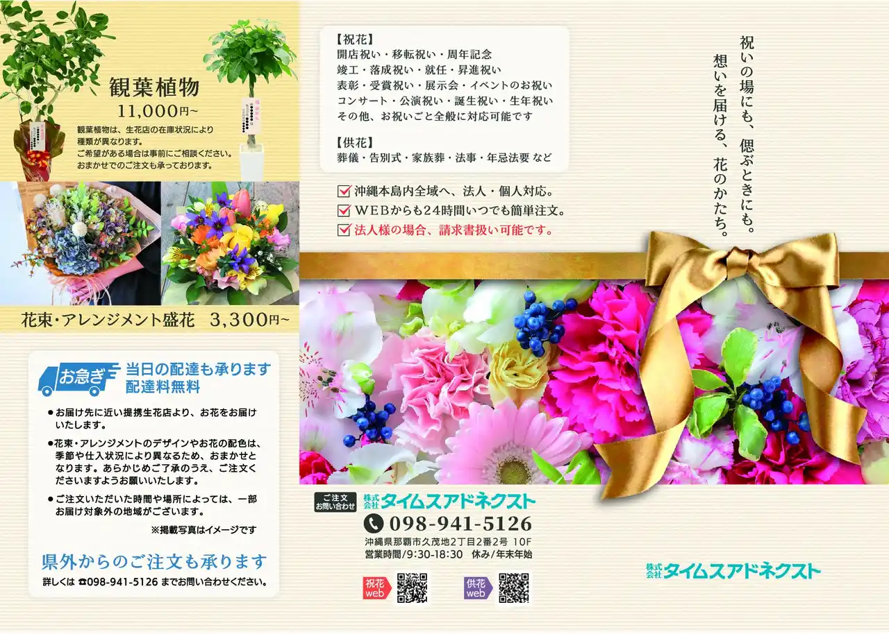 ※タイムスアドネクストでは、県内各地での、ご葬儀への供花手配も行っています。 |