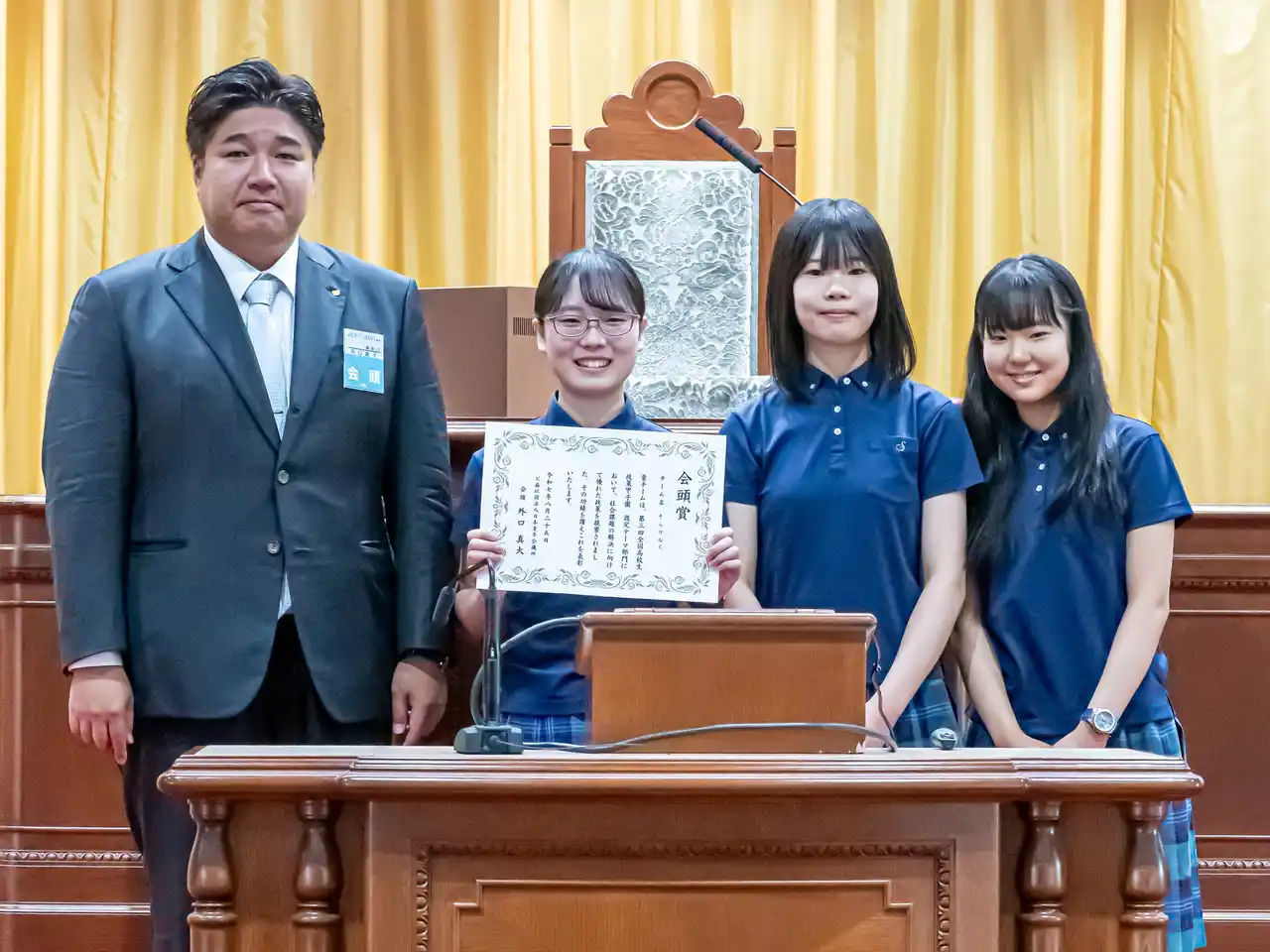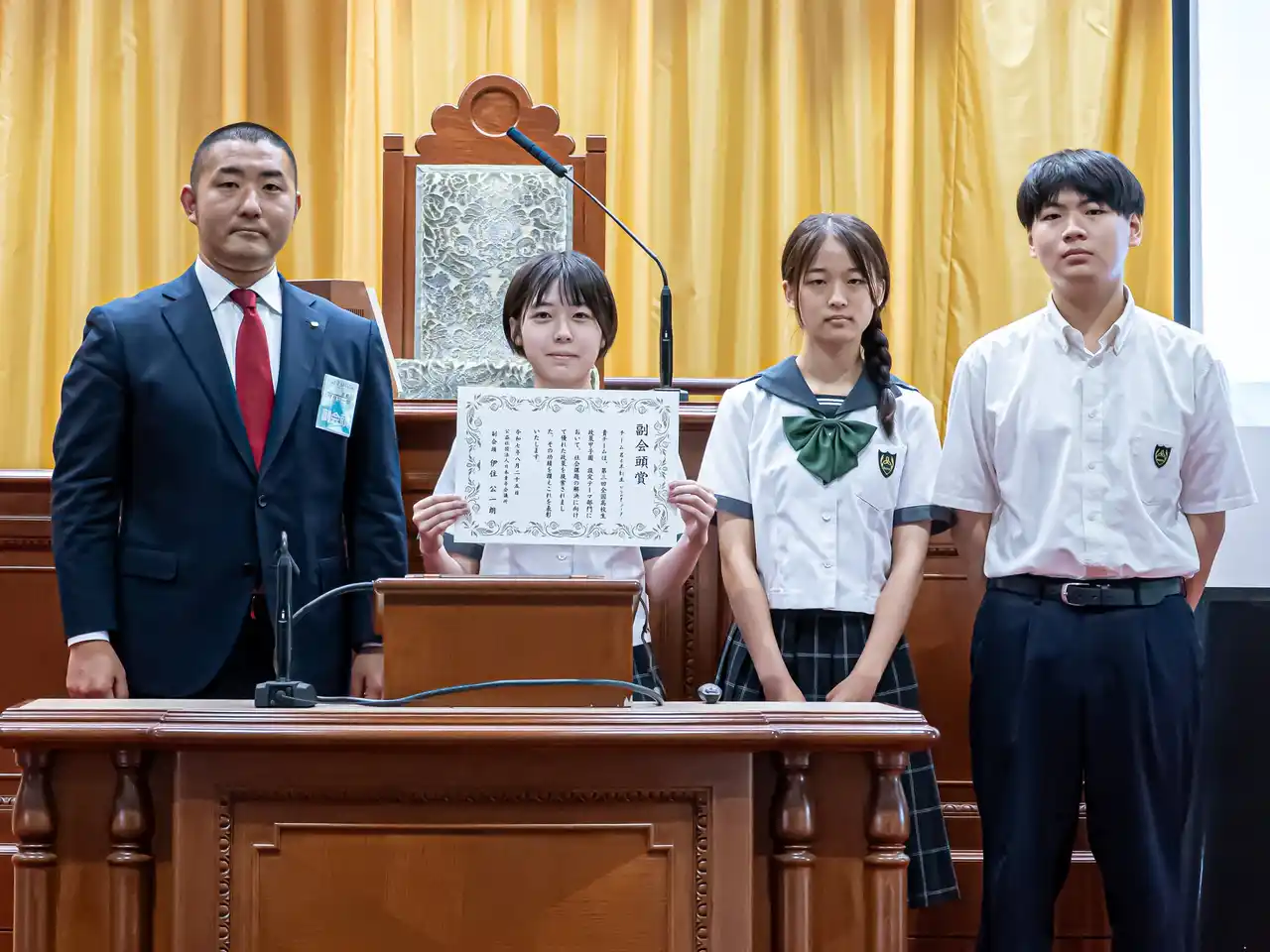 審査は、審査員1人25点の持ち点による採点で、合計点が高い順に「会頭賞」「副会頭賞」が選出されました。結果は次の通りです。※第三回全国高校生政策甲子園の「最優秀賞」は、9月1日(月)~20日(土)に行う国民投票(インターネット投票)によって決定いたします。 |