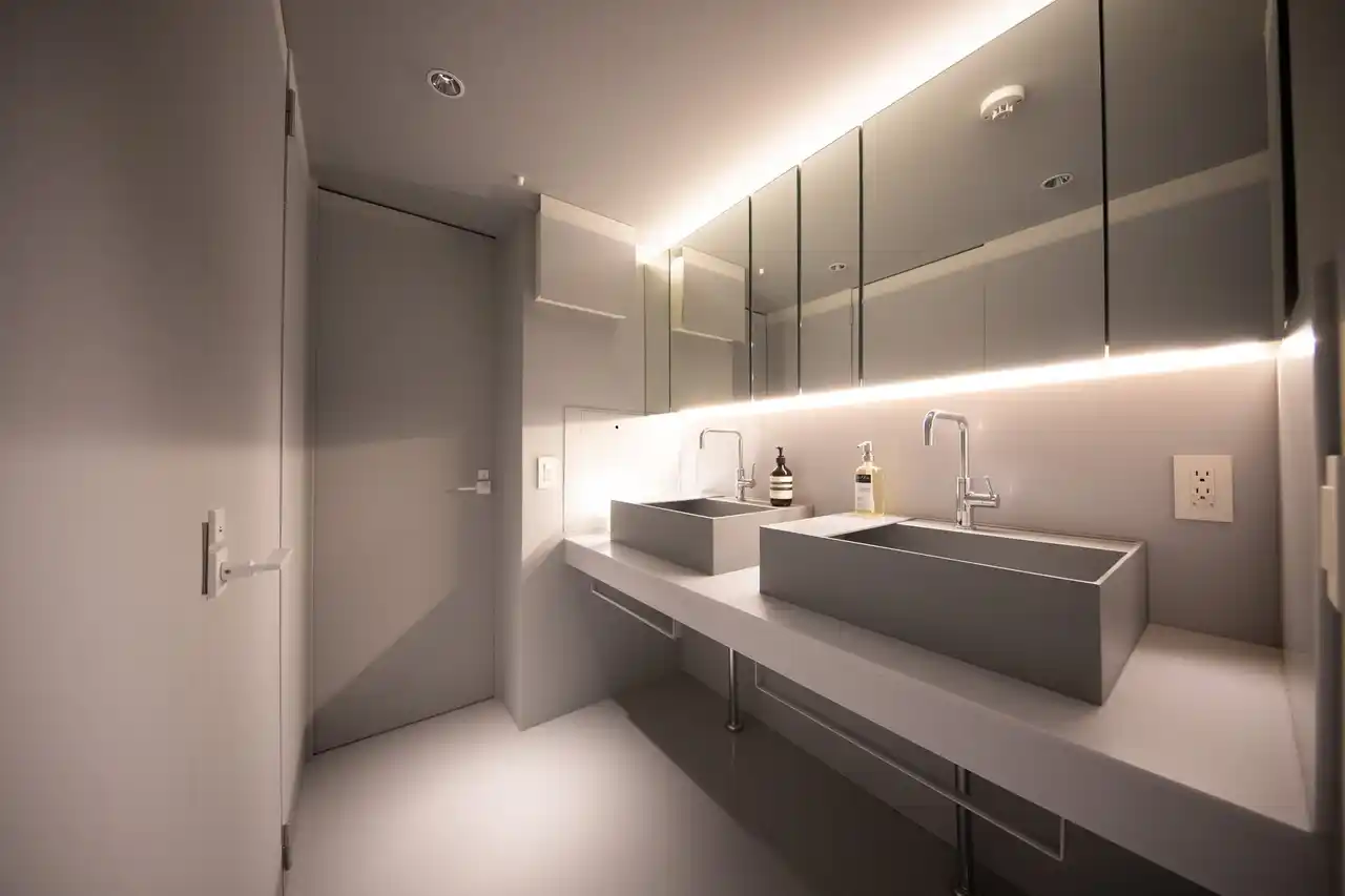 滞在をより快適にお過ごしいただけるよう、洗濯機や冷蔵庫など、利便性の高い設備を完備。2部屋の寝室とミニマルなバーも備えています。アメニティには品質に定評のあるAesop製品を採用しました。寝具はベッド3台とソファーベッドをご用意し、人数や滞在スタイルに合わせて柔軟にご利用いただけます。 |