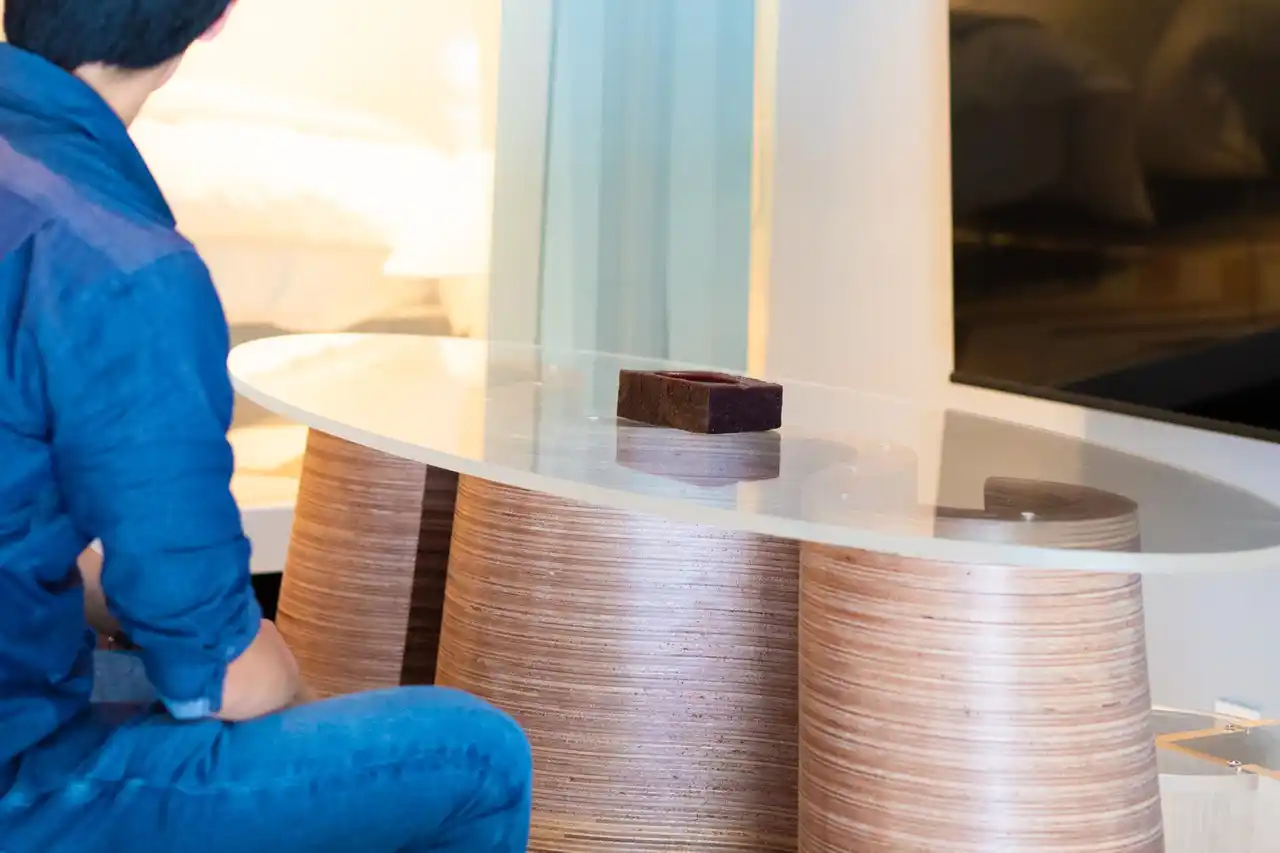ベニヤを積層させた有機的なソファテーブル、アクリル製のベッド、プラモデルのように組み立てられるスツールなど、空間の美しさと使いやすさを両立した家具を厳選しています。 |
