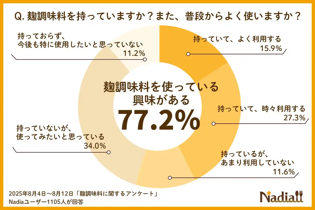 注目度急上昇!麹調味料に関心を持つ人は77.2% 一方で、「持っていても使いこなせない!」麹調味料のお悩みあれこれ