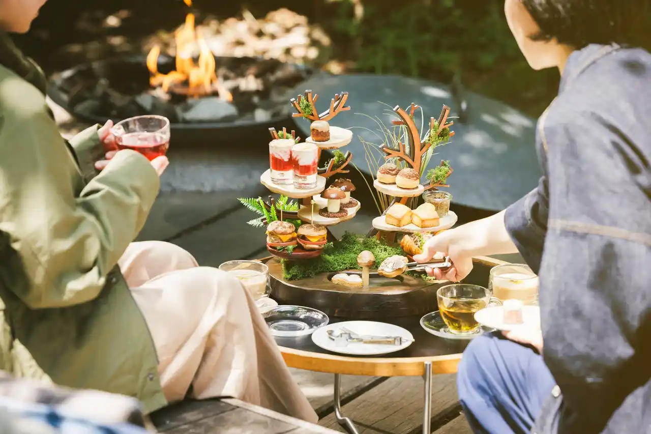 信州・長野から、食卓へ笑顔と健康を届けるきのこ総合企業のホクト株式会社と、「居酒屋以上 旅未満 みんなでルーズに過ごすホテル」をコンセプトとするBEB5軽井沢 by 星野リゾートの協業で、2025年10月1日~11月30日まで「きのこ」がスイーツに!? 秋の森を味わい尽くす新感覚の「きのこアフタヌーンティー」を提供します。信州の秋の味覚であるきのこを堪能できる、スイーツとセイボリー8種類が登場。ブナピーと苺のレアチーズ、霜降りひらたけのムースショコラ、生どんこバーガーなど、きのこの旨味を活かしたメニューが揃います。ペアリングには食物繊維が豊富な「マイタケポタージュ」を用意。さらに、軽井沢の森をイメージしたオリジナルスタンドで提供し、まるで森できのこ狩りをしているような気分を楽しめます。