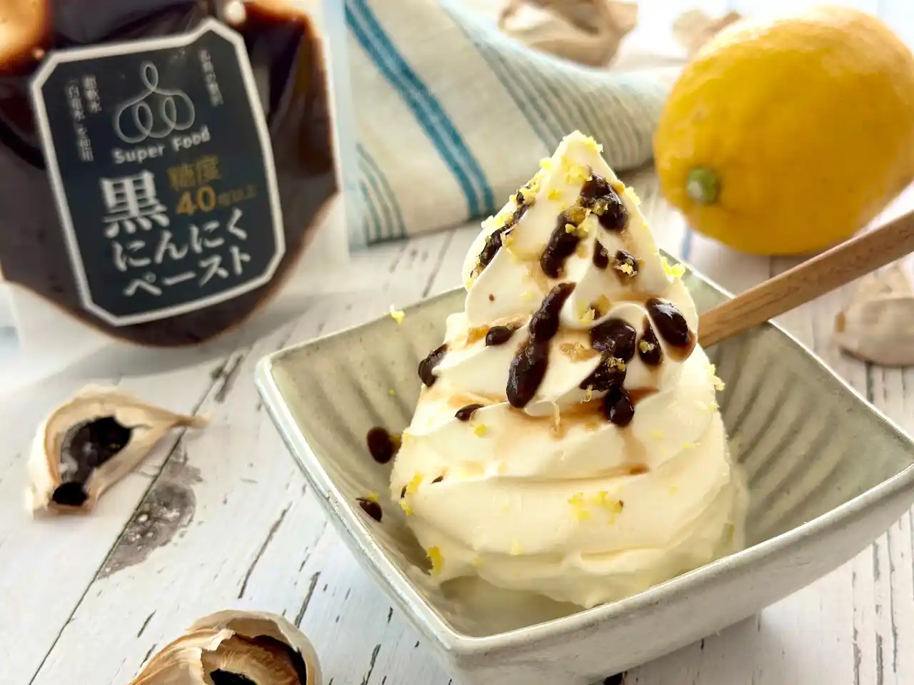 会期中、弊社出展ブースにて「瀬戸内レモン入り黒にんにくペースト」をご試食いただけます。残暑の季節に合わせ、冷たいバニラアイスにかけたスタイルでご提供。黒にんにくのコクとレモンの爽やかさが織りなす、驚きのマリアージュをぜひお楽しみください。 |