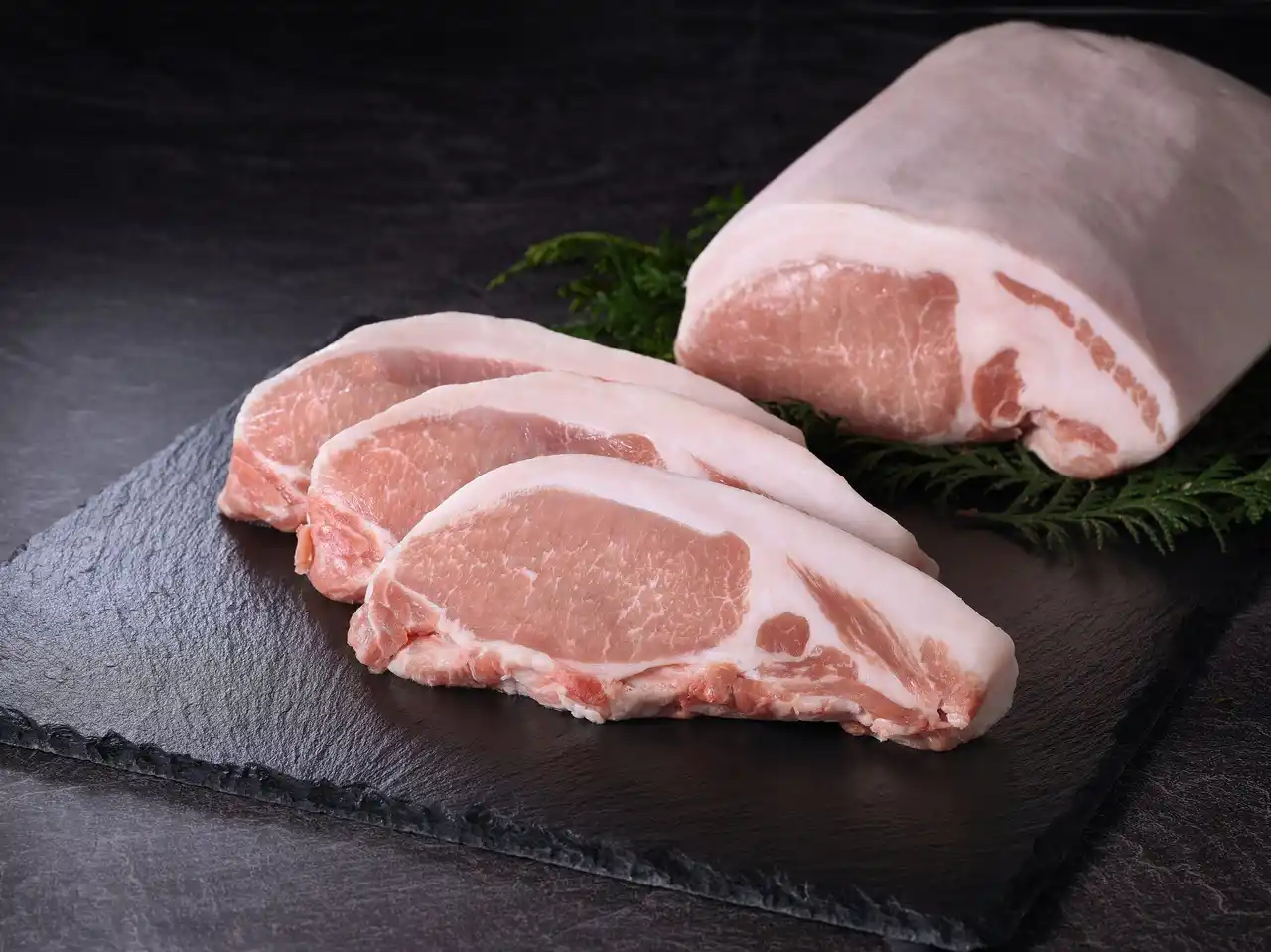茨城県と生産者が協力して開発した銘柄豚「常陸の輝き」。一般の豚肉に比べて霜降りが多く、やわらかな肉質が特長です。専用の飼料でじっくりと育てることで、旨味や甘味のもととなるアミノ酸が豊富に含まれ、「やわらかさ」「旨味の強さ」「香りの良さ」が三拍子そろった逸品に仕上がっています。 |