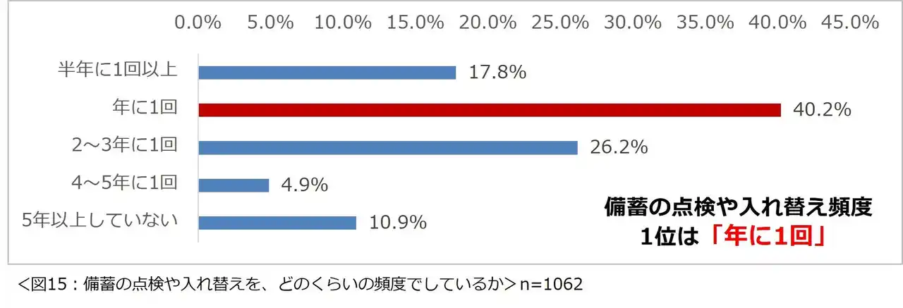 1割以上。なお、備蓄している人の約4割が「年に1回」点検や入れ替えをしていると回答。