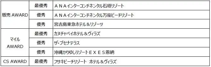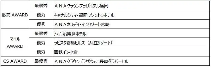 本アワードは、ANAトラベラーズ ダイナミックパッケージ・ANAトラベラーズ ホテルの全国各エリアの契約宿泊施設を対象に公平・公正な選考を行い、3つの賞で表彰させていただきました。特に、「ANAマイルAWARD」は、弊社ならではのANAのマイルを用いてオリジナルの賞を創設いたしました。 |