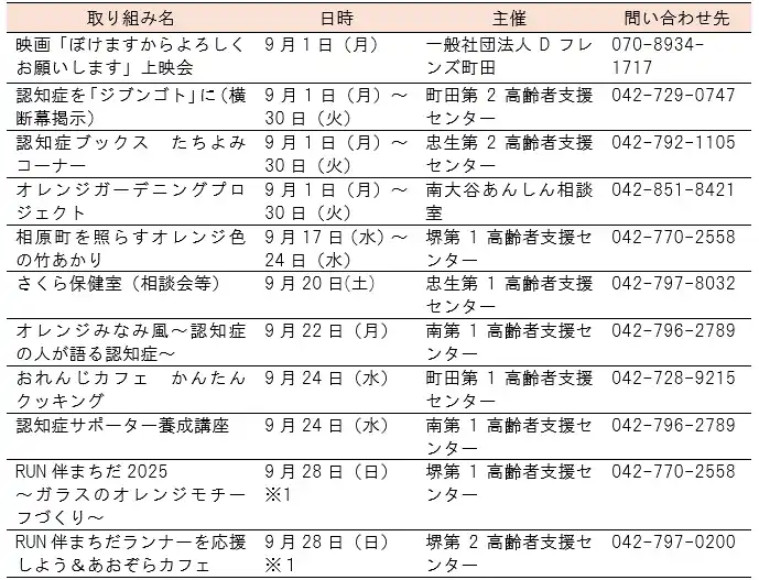 この期間中、「認知症とともに生きるまち」を目指し、認知症を広く市民の皆様に理解してもらうことを目的とし、市や地域団体等が様々なイベントを開催します。 |