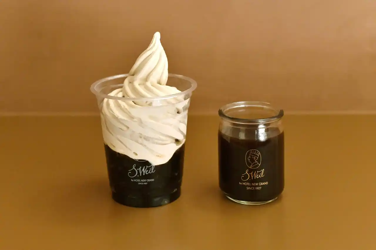 S.Weilの本格派コーヒーと、濃厚な北海道産生乳を使用した、カフェオレのような味わいが魅力のソフトクリームをコーヒーゼリーにトッピングしました。 |