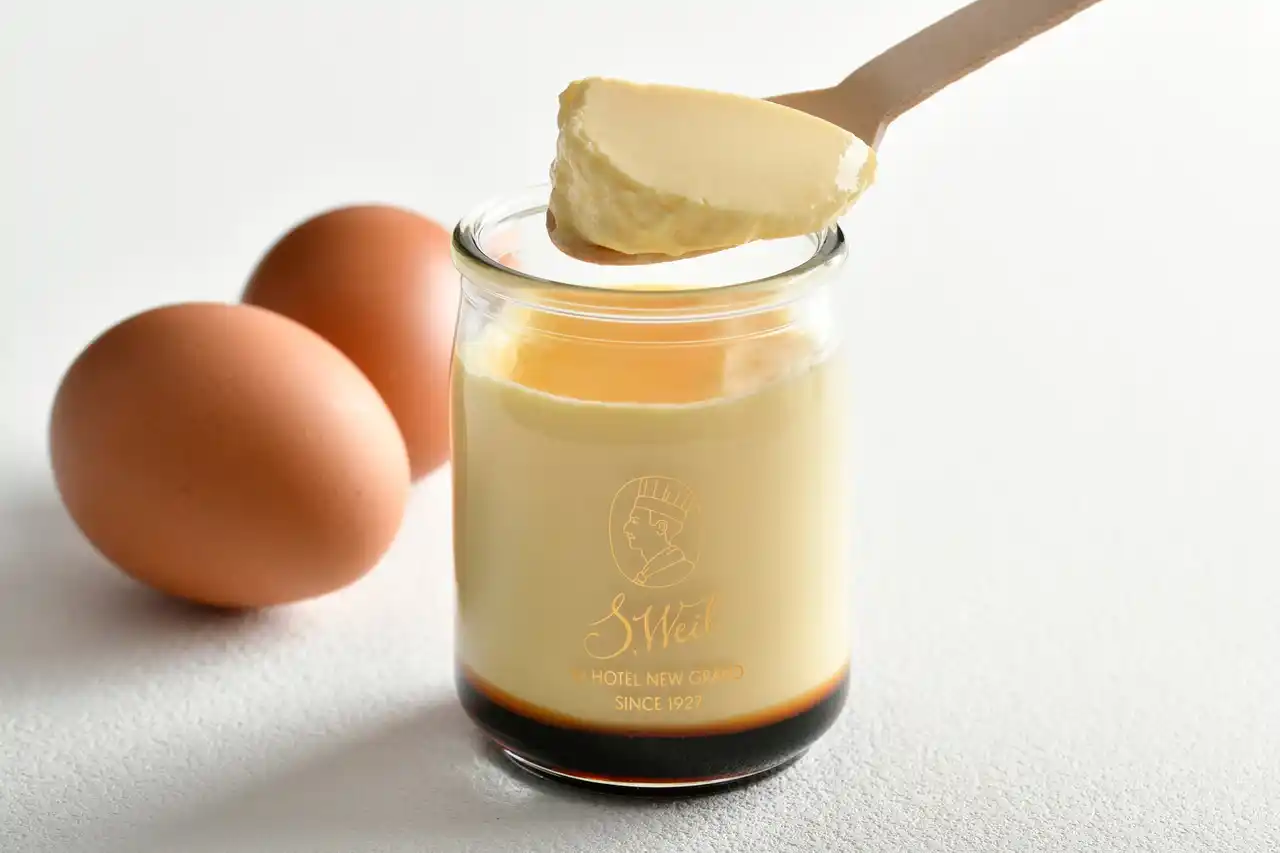 山吹」を使用し人気の「S.Weilのババロア」をプリンにアレンジ、ババロアのなめらかな食感とホテルニューグランド伝統のカスタードプリンの上品な味わい、それぞれのいいとこどりをして誕生した一品です。本商品は、パティシエのちょっとした遊び心で創作したスイーツを試食したスタッフがその美味しさに感動したことから販売することとなりました。