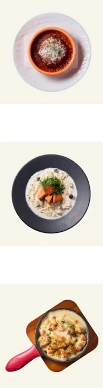 秋鮭といくらを贅沢にトッピングしたあたたかいクリームそうめん。エリンギやしめじ、えのきなどのきのこの旨味が加わったクリームソースと、細いそうめんがよく絡み合います。大葉の爽やかな香りとブラックペッパーのピリッとしたアクセントが全体の味わいを引き締めます。 |