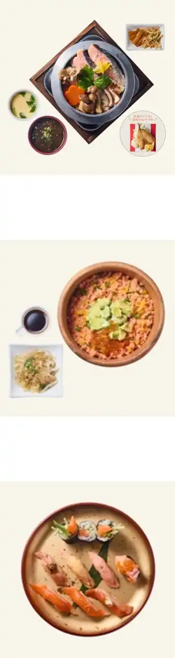 ふわふわでジューシーな鮭にキラキラと輝くいくらを添えた秋の贅沢ご飯。きのこの香り豊かな混ぜご飯が鮭の旨味を引き立てます。牛テールとあご出汁の特製スープをかければお茶漬けとしても楽しめます。秋野菜の揚げ浸しやひじき煮付で栄養バランスも抜群です。 |