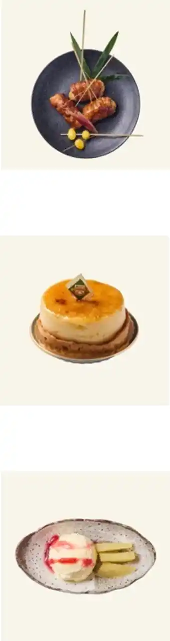 低温調理で甘さと香りをじっくり引き出したさつま芋を鉄板で香ばしく焼き上げた、贅沢スイーツ。サクサクのチップスとホクホクのスティックの食感の違いが楽しめます。クリーミーなアイスや香ばしいアーモンド、爽やかなリンゴのコンポートが味わいの変化となり気分を高めてくれます。 |
