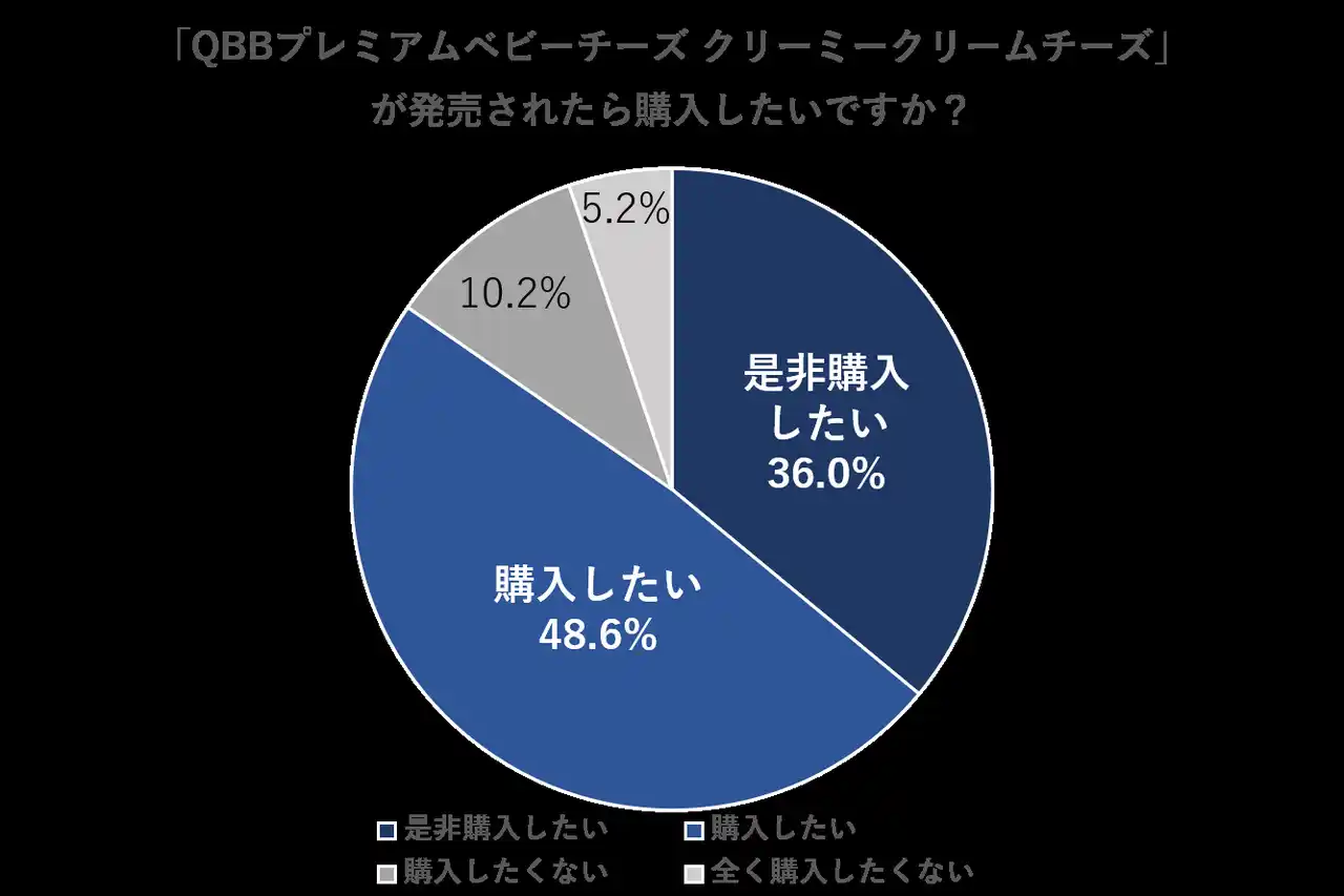 QBBプレミアムベビーチーズを半年に1回以上購入する方を対象としたアンケート※によると84.6%が、本商品が発売されたら購入したいと回答しました。 |