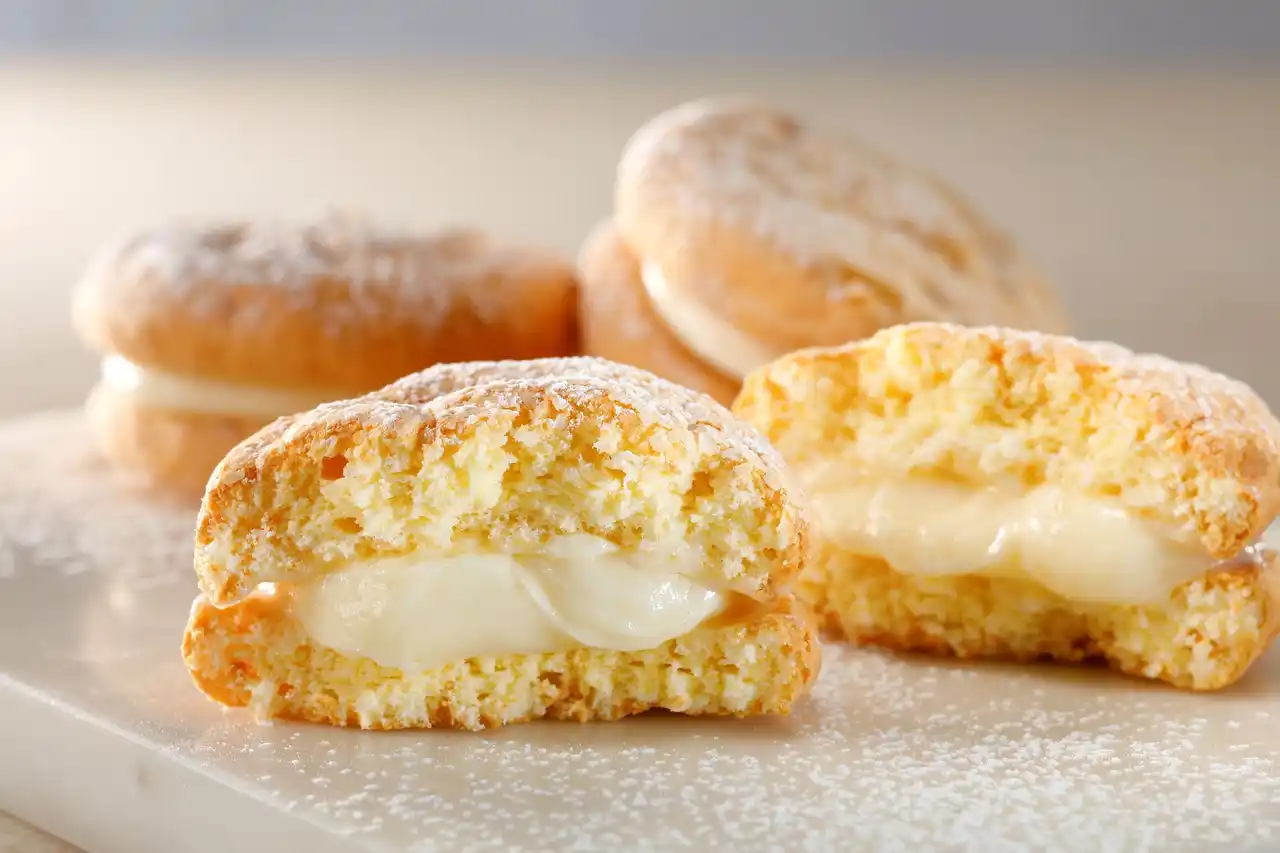 北海道産小麦のブッセ生地でカマンベールチーズで仕立てたチーズクリームをサンドしました。 ブッセのやわらかく香ばしい食感とカマンベールチーズのクリーミーで濃厚な味わいをお楽しみください。 |