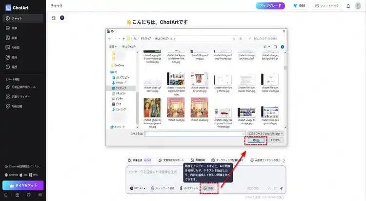 ステップ1. 上記のボタンからChatArtブラウザ版にアクセスし、チャット欄に直接画像をペーストするか、「画像」をクリックして元画像をアップロードします。 |