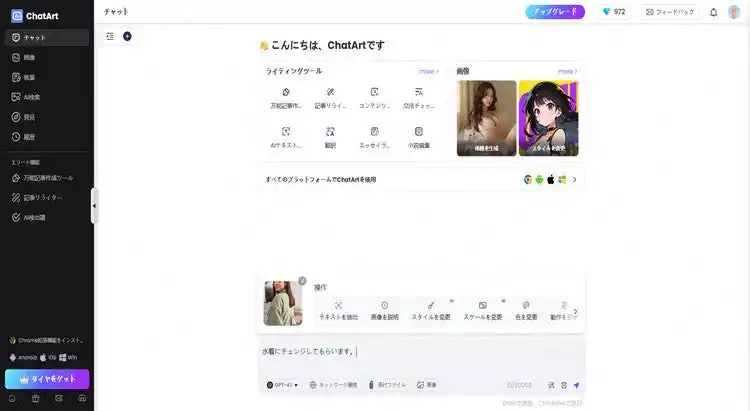 ChatArtは無料版と有料版を提供しており、無料版でも全機能を登録なしで体験可能です。制限なく利用したい場合は、有料プランの購入がおすすめです。 |