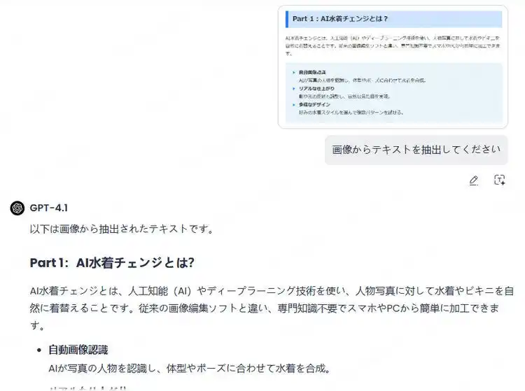 文字抽出(OCR):画像内のテキストを読み取り、コピー&編集できる形式に変換。 |