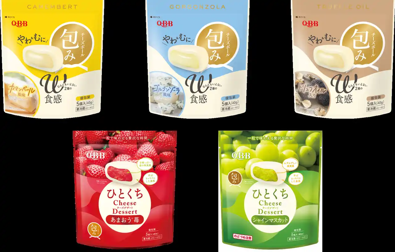 | 2021年9月にQBBから誕生した新感覚チーズボール「包み」。濃厚で滑らかなチーズソースを、もっちりとしたチーズ生地で「ギュッ」と包み込んだ新感覚商品です。2021年の発売までに7年間の試行錯誤の末に発売し、翌年にはミリオンセラーを達成しました。 | |||||||||||||||