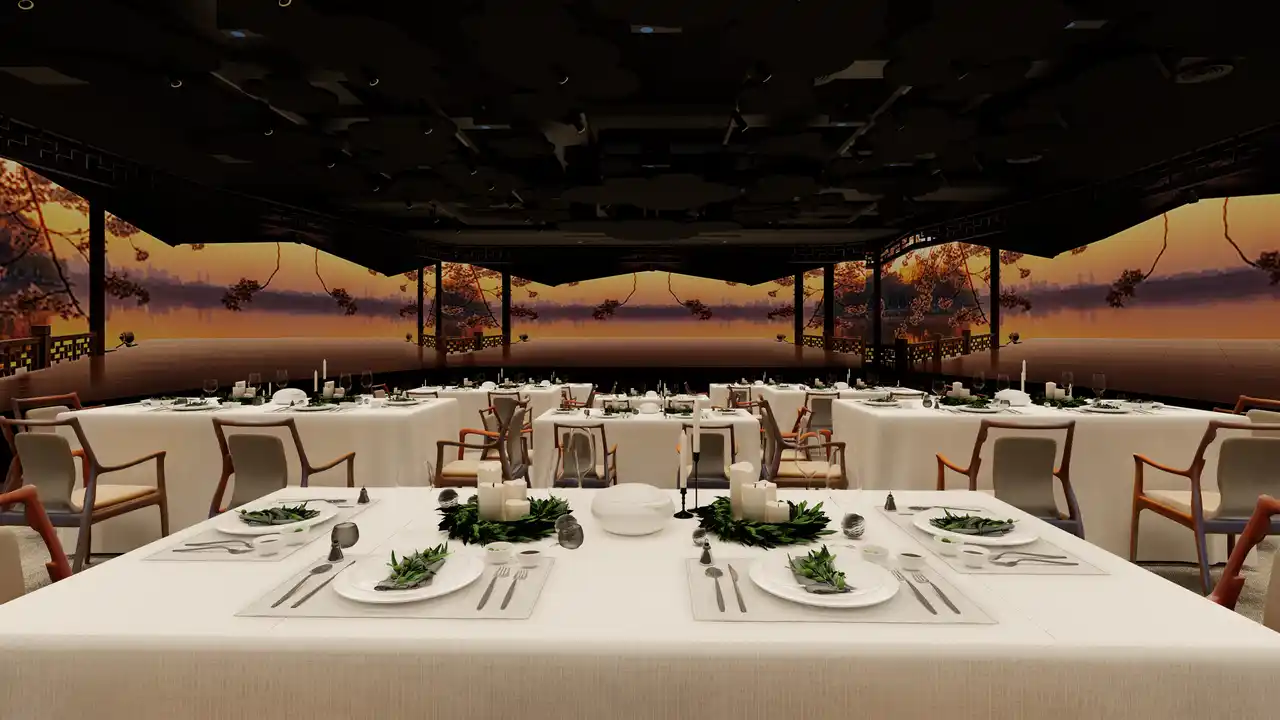 視覚・聴覚・体験で楽しむ没入型ショーレストラン 「Taste of China」では、迫力ある映像演出とライブパフォーマンスが各料理を鮮やかに彩ります。優雅な漢服をまとったダンサーが蘇州の庭園を舞い、デジタル映像のリズムと調和します。別の章では、演者が棒を操る少林武術の力強い演舞が繰り広げられます。さらに桂林の漁期を描く場面では、観客がテーブル上のインタラクティブゲームで魚を“捕まえる”体験も楽しめます。 クライマックスを飾るのは四川オペラの変面。アーティストがロックのリズムに合わせ、驚くほどの速さで次々と仮面を変えていく圧巻のパフォーマンスです。 |