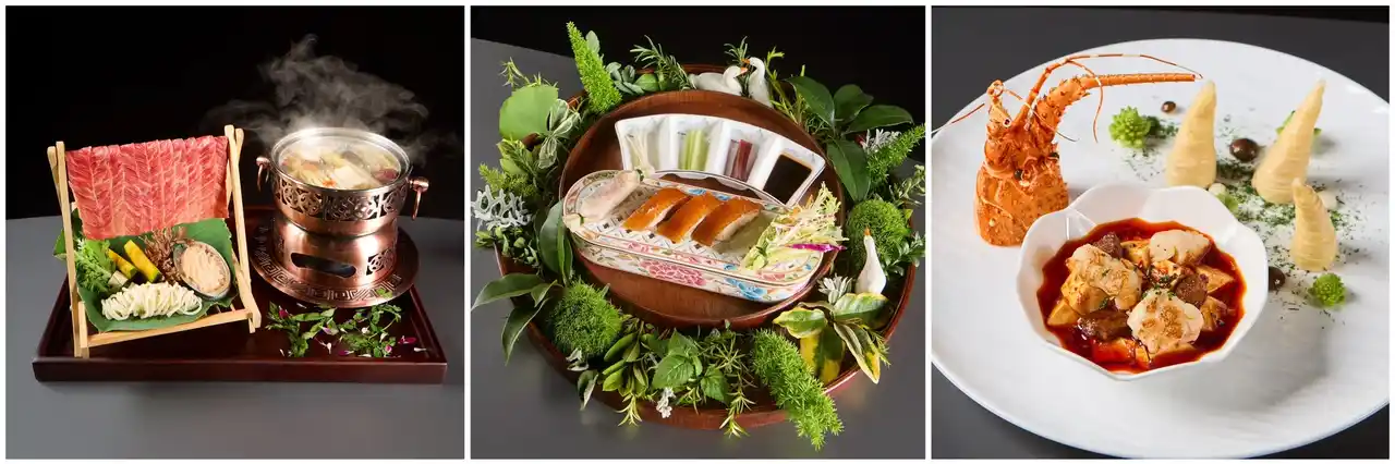 | 北部の料理では、香ばしくジューシーな北京ダックを爽やかなジャスミン茶とともに堪能し、南部の料理では、さっぱりとした酸味が特徴のサワースープフィッシュを、まろやかなプーアル茶と組み合わせて味わえます。中部の料理では、霜降り牛やアワビ、希少なキノコなど贅沢な食材を使った滋養豊かな薬膳火鍋が登場。そして西部の料理では、スパイス好きにはたまらない麻婆豆腐が、和牛の角切りやロブスターを加えて進化した一皿として提供されます。 | ||||||||||||||||||||||||
