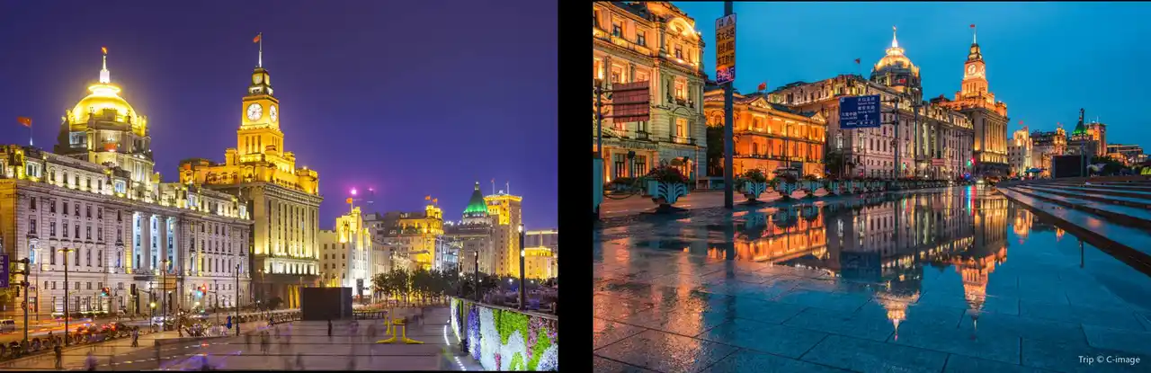 外灘 外灘は、上海・黄浦区西岸の散策スポット。中山路沿いには多様な建築が並び、対岸には東方明珠塔や高層ビル群がそびえます。夜はライトアップされ、夏の涼みスポットとしても人気です。 |