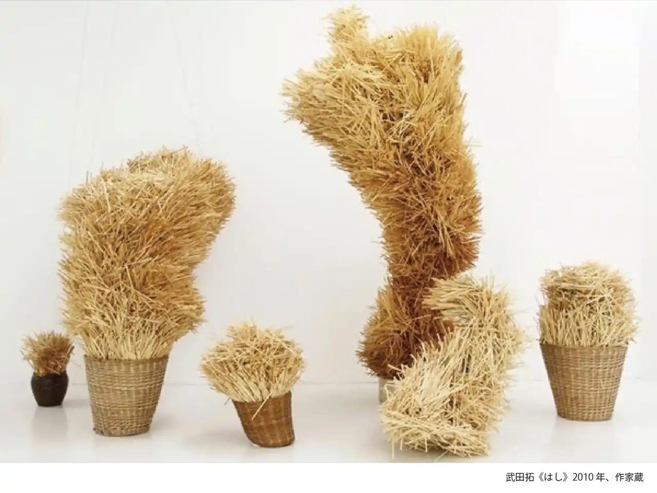 1988年 山形県生まれ。割り箸を牛乳パックに詰める作業が発展し、約2か月かけて最大2メートルを超える作品全8点が完成した。日常的に使っては捨てられる割り箸がうねりながら蘇り、木の姿へと回帰する過程を思わせる。重力に反した造形には有機的なエネルギーが宿っている。近年の主な展示に、「ポコラート世界展『偶然と、必然と、』」(アーツ千代田 3331[東京]2021年)などがある。 |
