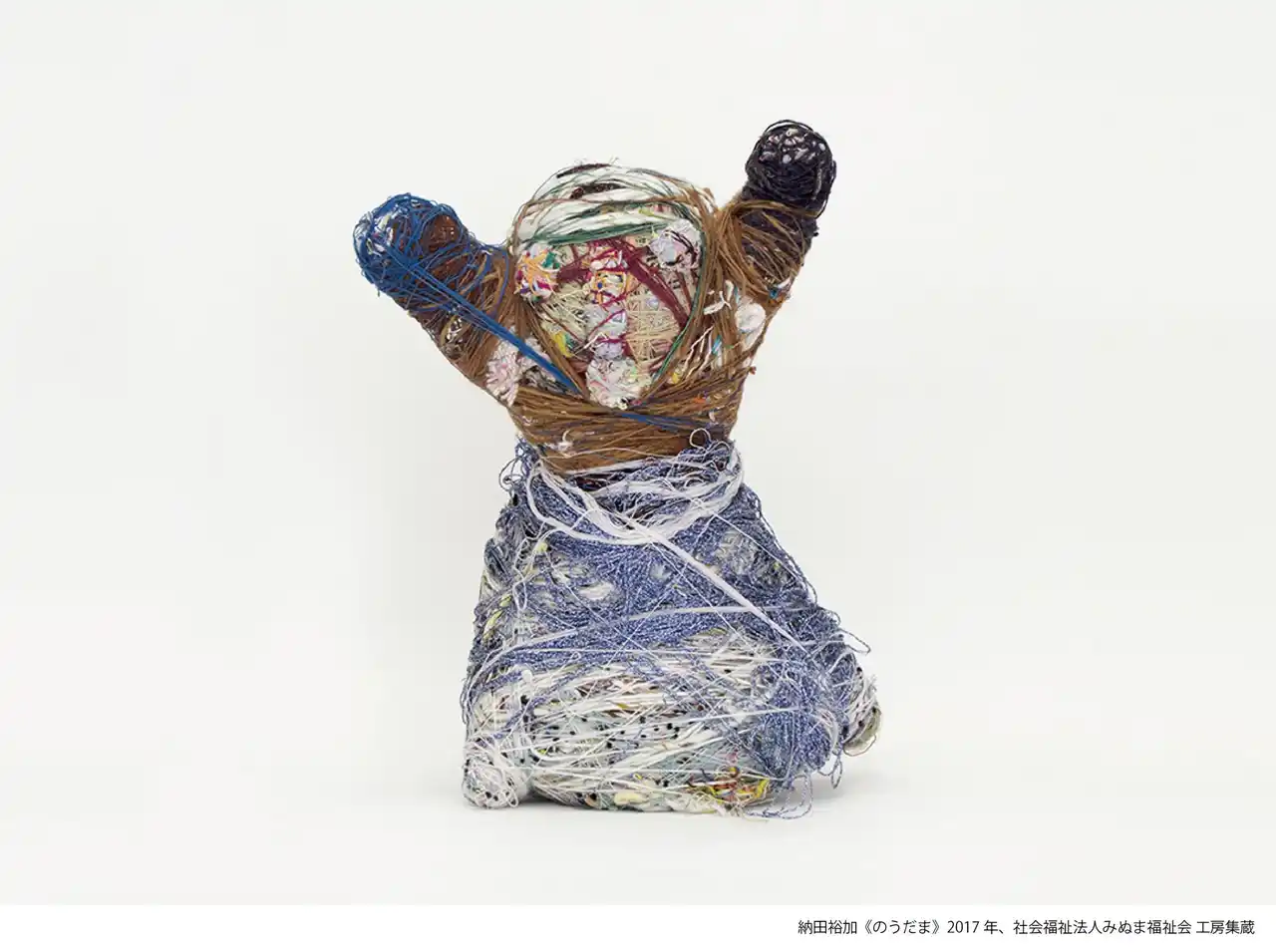 1966年 埼玉県生まれ。アトリエで廃棄される糸や布の切れ端を拾い集め、巻き固めた「のうだま」と自身で名付けたオブジェをつくっている。やわらかな線が重なり合い、繭や人型のフォルムが生まれる。カラフルで生き生きとした色合いも相まって、今にも動き出しそうな生命感にあふれている。近年の主な展示に、「Outsider Art Fair in New York 2025」(メトロポリタン・パビリオン[ニューヨーク]2025年)などがある。 |
