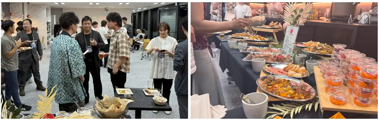 オフライン交流会の後半には、お酒と簡単な食事を囲みながらの交流時間を設けています。 野口やゲストスピーカーとの直接の会話はもちろん、参加している経営者・起業家・事業推進者などとの出会いを通じて、ビジネスパートナーや新たな協業相手を見つけるチャンスです。 |