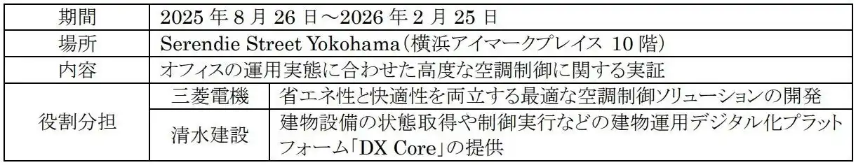 三菱電機株式会社は、共創空間「Serendie Street Yokohama(セレンディストリート横浜)」において、当社のデジタル基盤「Serendie(R)(セレンディ)」と清水建設株式会社(以下、清水建設)の建物OS(※1)「DX-Core」(※2)を連携させ、オフィスフロアにおける空調制御の最適化に向けた実証実験を8月26日から開始します。 |