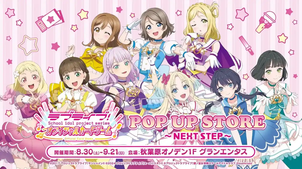 また、同オノデンビル1Fのイベントスペース「グランエンタス」では、「ラブライブ!シリーズ オフィシャルカードゲーム POP UP STORE~NEXT STEP~」が同時開催となります。 |
