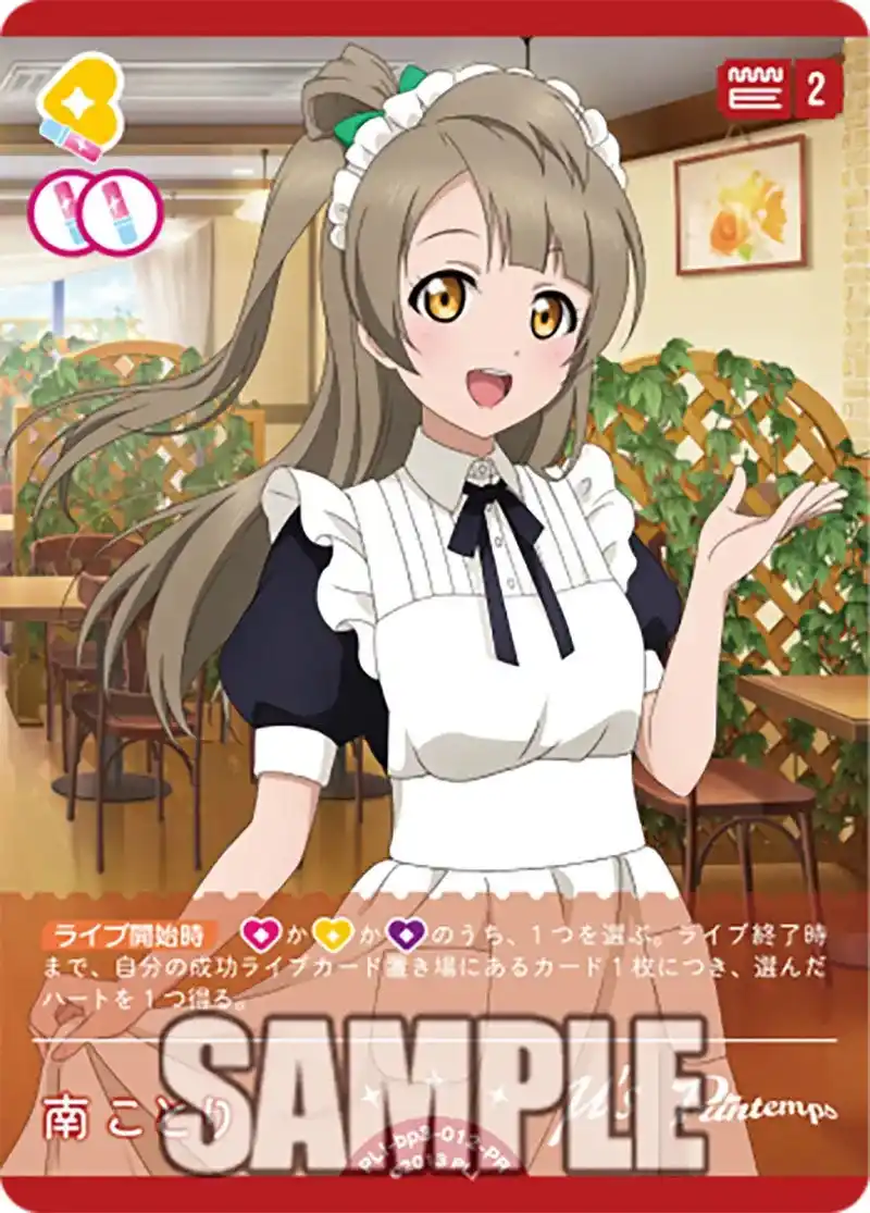 CURE MAID CAFE(キュアメイドカフェ)店内や同フロア、ジーストア・アキバにて「ラブライブ!シリーズ」関連商品を2,000円(税込)ご購入・ご予約ごとに、カフェで配布している<コラボ限定カード>をランダムで1枚お渡しします。 |