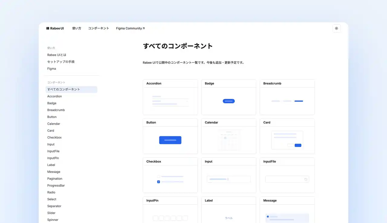 今回リリースしたコンポーネントも含む全29種類のRabee UIは、以下から確認できます。 |