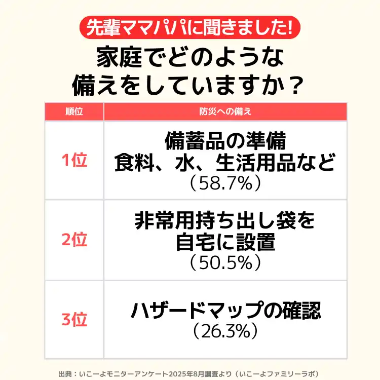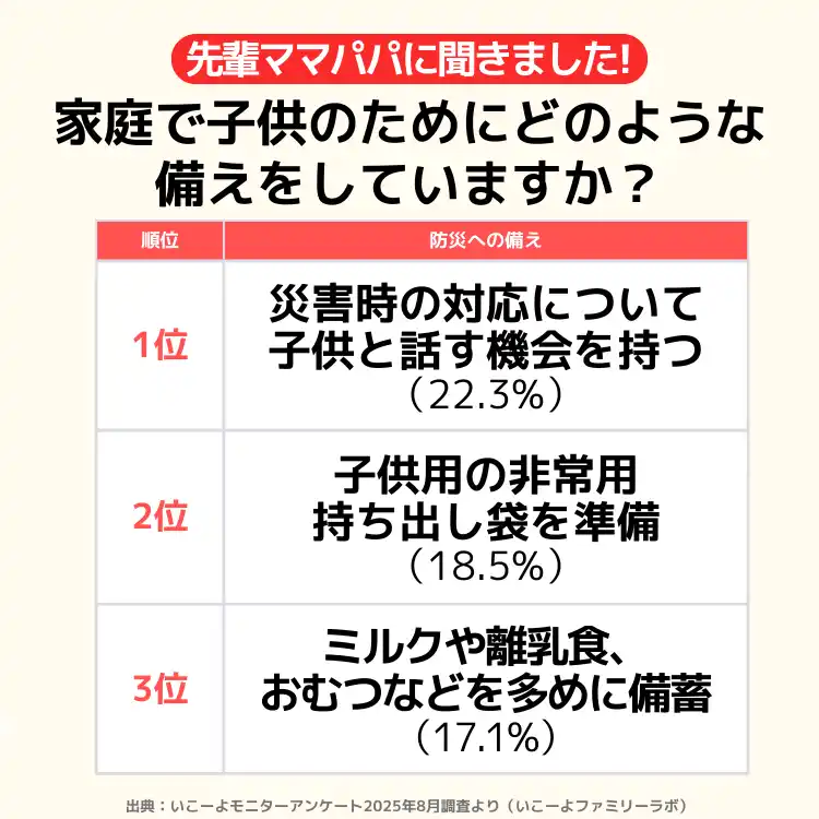 | 発表!子育て世帯が子供のためにやっている災害対策ランキング 1位は? |