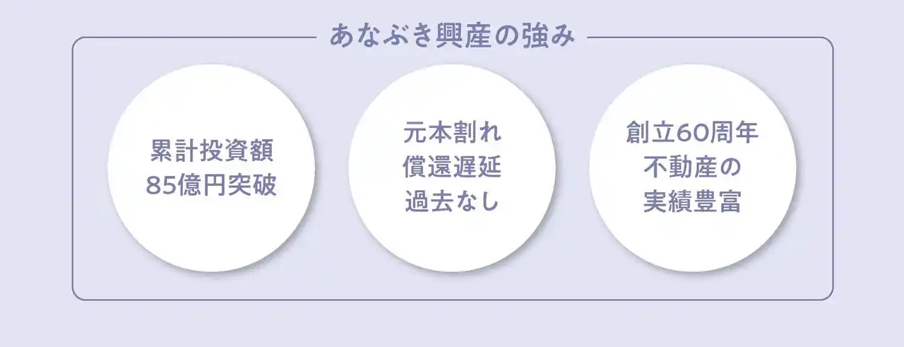穴吹興産が取得した約1,000戸の区分マンションから、物件を厳選しています。物件が全国に点在しているため、経済情勢の変化や、局地的な災害リスクを分散できます。 |