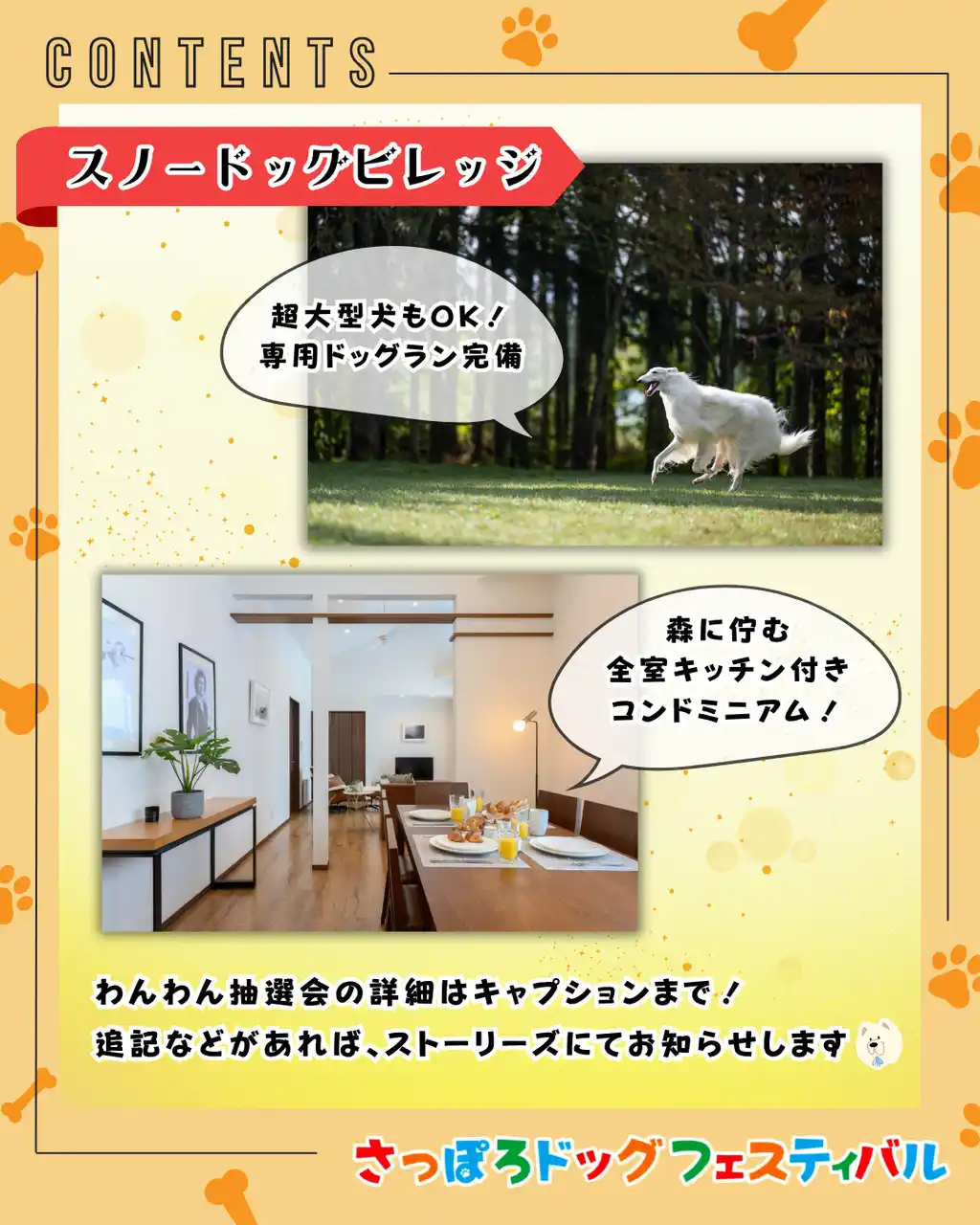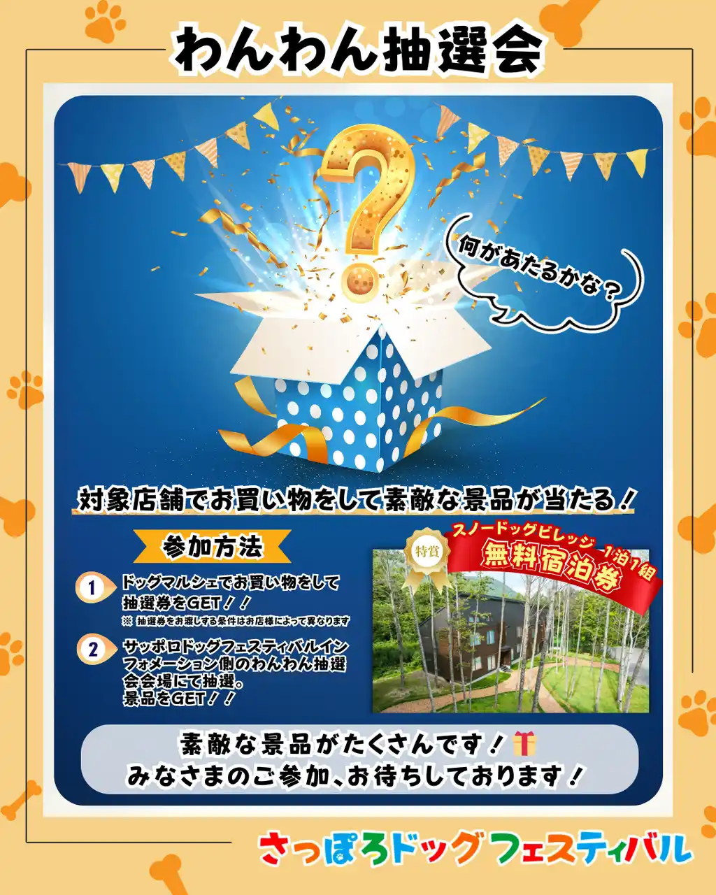 わんちゃんと泊まれる「スノードッグビレッジ」無料宿泊券や、出店社様ご協賛いただいた素敵な景品が当たる抽選会を開催! |