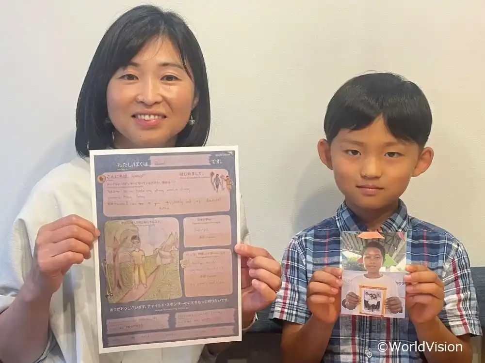エドゥアルドくんの手紙とお写真を持つ鈴木さん親子 |