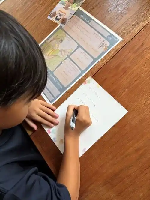 エドゥアルドくんに手紙を書くSくん(2025年8月) |
