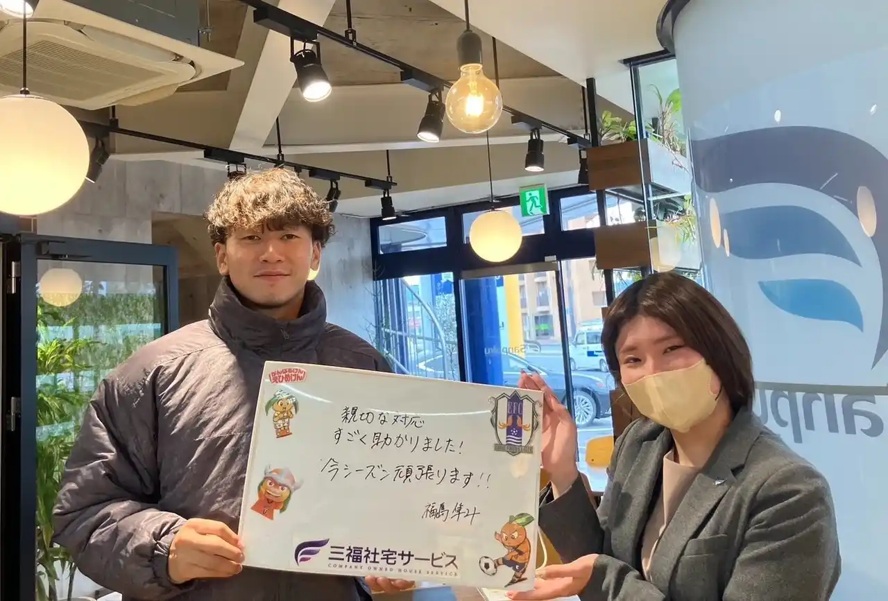 | 愛媛県松山市で地域密着型の法人向け社宅支援を行う株式会社三福社宅サービスは、地元プロサッカークラブ「愛媛FC」へ2025年シーズン後半より新規加入する選手の住まい探しを支援・借上げ社宅の仲介業務を担当いたしました。 | |||||||||