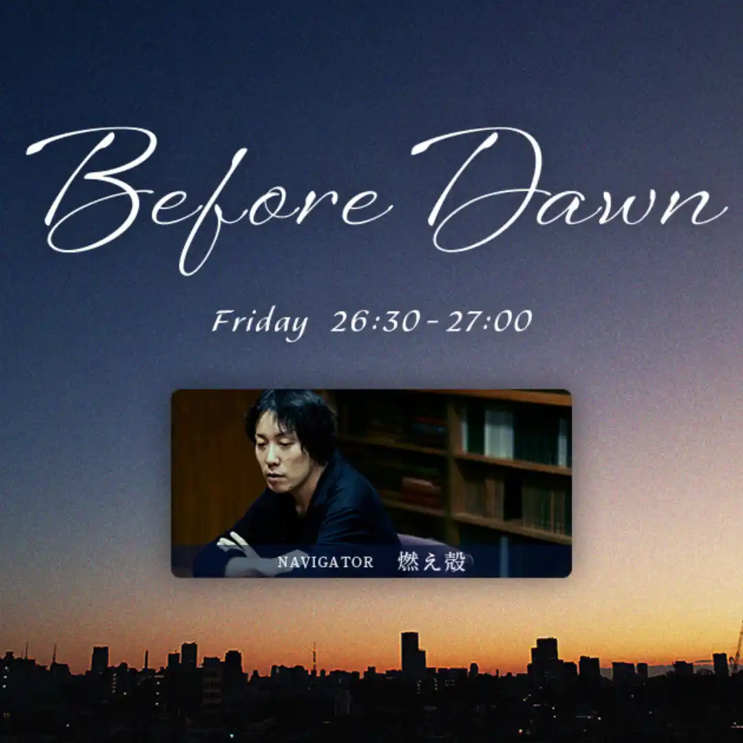 | ラジオ局J-WAVE(81.3FM)で毎週金曜深夜26:30~27:00に放送中、小説家・燃え殻がナビゲートする番組『BEFORE DAWN』。夜と朝の間「夜明け前=BEFORE DAWN」に、日常の喧騒から少し離れ、心の奥底にある“静かな感情”に耳を傾けるこの番組に、8月29日(金)と9月5日(金)の2週にわたり、漫画家ユニット・ゆでたまごの嶋田隆司がゲストとして登場します。 | ||||||||||||||||||||