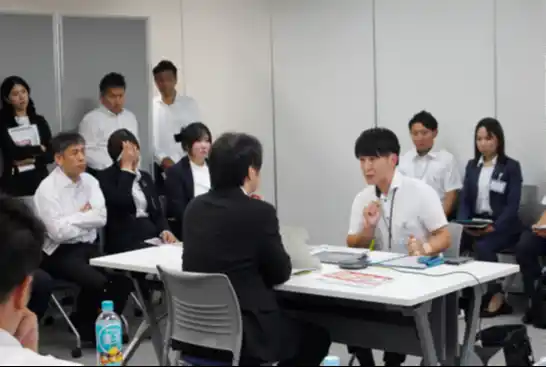 コンテスト当日の前半は、決勝に進む 4 名を選出するため、準決勝に進んだ 20 名を 4 つのグループに分けて審査が行われました。準決勝では、当日ランダムに出題されたシチュエーションでの商談ロールプレイングにより営業スキルを競い合いました。参加者は、制限時間 30 分間の中でお客さまに最適なサービスを提案するためお客さま役の潜在ニーズを引き出しながら商談を行い、各グループの勝者 4 名が決勝進出を決めました。 |